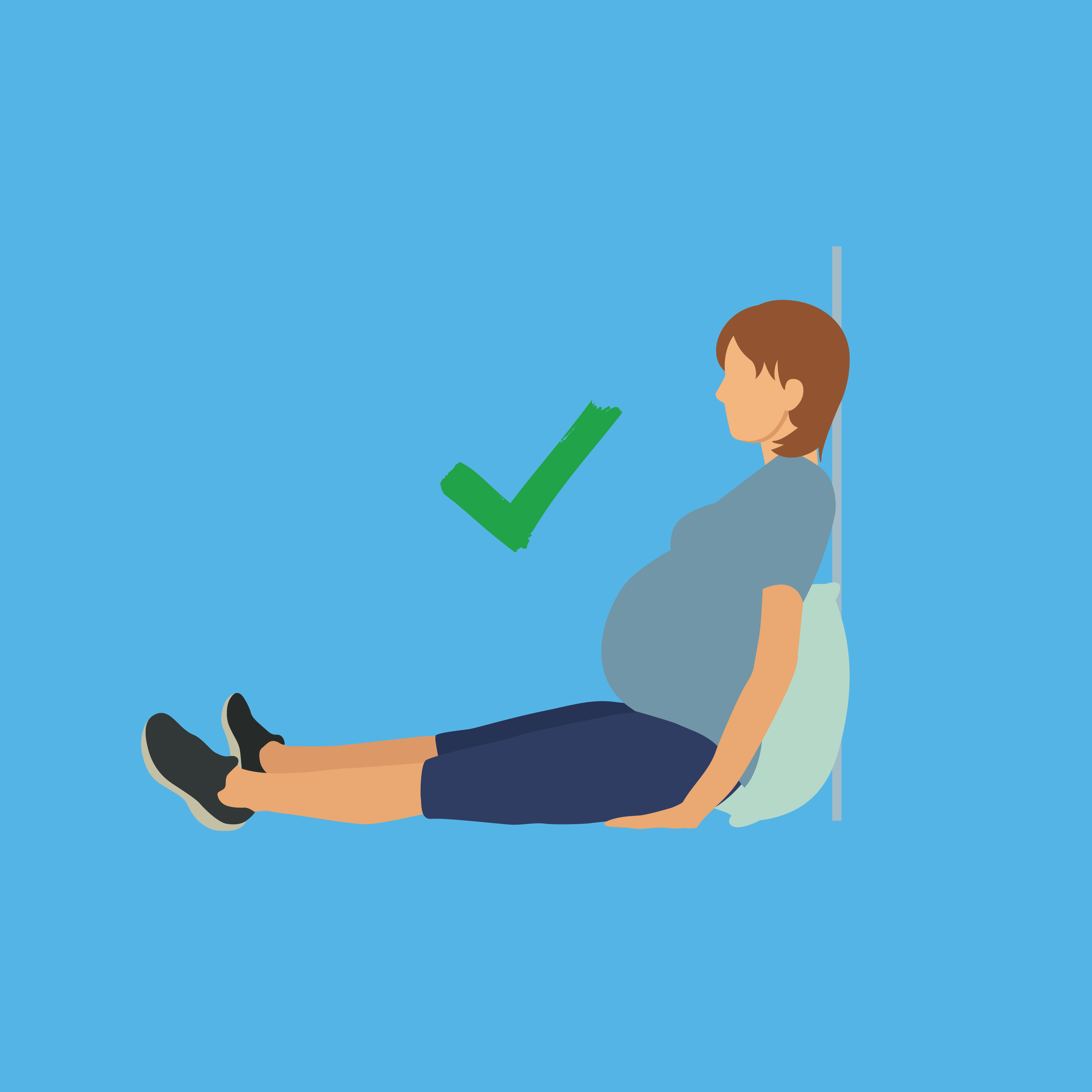 A pregnant person should sit with their legs stretched out flat or be placed in the recovery position on their left side for good blood flow from mum to the baby.